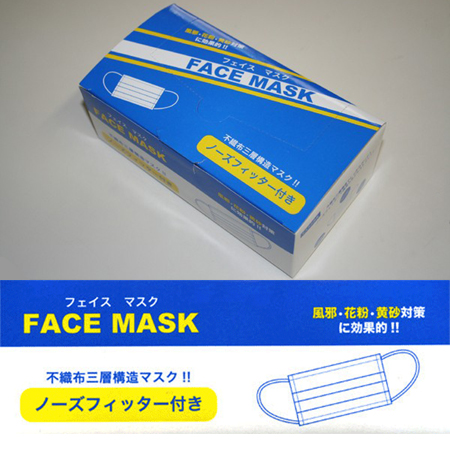 Top > ダイエット・健康 > ワイドシステム > <<完売>>ノーズフィッター付き!不織布三層構造マスク 50枚入り☆インフルエンザ・風邪・花粉・黄砂対策に効果的! <<完売>>ノーズフィッター付き!不織布三層構造マスク 50枚入り☆インフルエンザ・風邪・花粉・黄砂対策に効果的!の概要 商品名