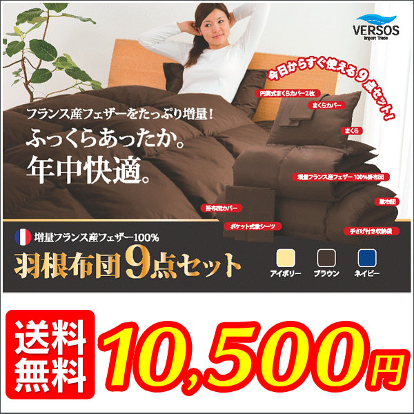 ≪完売≫増量フランス産フェザー100%掛布団9点セット メーカー